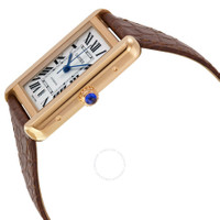 18kt pink gold case with a brown (alligator) leather strap. Fixed 18kt pink gold bezel. White dial with blue steel hands and Roman numeral hour markers. Minute markers around an inner ring. Dial Type: Analog. Date display at the 6 o'clock position. Cartier calibre 049 automatic movement, based upon ETA 2892-A2, containing 21 Jewels, bitting at 28800 vph, and has a power reserve of approximately 42 hours. Scratch resistant sapphire crystal. Push / pull crown set with a blue cabochon. Solid case back. Rectangle case shape. Case dimensions: 40.85 mm x 31 mm. Case thickness: 7.65 mm. Band width: 21 mm. Tang clasp. Water resistant at 30 meters / 100 feet. Functions: date, hour, minute, second. Tank Solo Series. Luxury watch style. Watch label: Swiss Made. Cartier Tank Solo XL Automatic 18kt Pink Gold Men's Watch W5200026. GENERAL Color: Blue / Brown / Gold / Pink / Tan / White CASE Case Size: 40 Case Thickness: 7.65 mm Case Material: 18kt Pink Gold Case Shape: Rectangle Case Back: Solid BAND Band Material: (Alligator) Leather Band Type: Strap Band Color: Brown Band Width: 21 mm Clasp: Tang DIAL Dial Color: White Type: Analog Crystal: Scratch Resistant Sapphire Hands: Blue Steel Dial Markers: Roman Numeral Second Markers: Minute Markers around an inner ring Bezel: Fixed Bezel Material: 18kt Pink Gold Crown: Push / Pull set with a Blue Cabochon INFORMATION Brand: Cartier Series: Tank Solo Collection Name: Tank Solo Gender: Mens Model: W5200026 Watch Label: Swiss Made Movement: Automatic Engine: Cartier Calibre 049 Power Reserve: 42 hours FEATURES Water Resistance: 30 meters / 100 feet Calendar: Date display at the 6 o'clock position Functions: Date, Hour, Minute, Second Watch Features: Leather, Gold, Analog, Alligator Leather ADDITIONAL INFO Watch Style: Luxury Warranty: 2 Year Jomashop Warranty UPC Code: 7612456835391 Jomashop Sku: CRTW5200026 Department: Watches Category: Watches