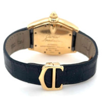 Yellow gold-tone 18kt yellow gold case with a black leather strap. Fixed yellow gold-tone 18kt yellow gold bezel. Silver dial with luminous hands and Arabic numeral hour markers. Minute markers around an inner ring. Dial Type: Analog. Luminescent hands and dial markers. Date display at the 3 o'clock position. Automatic movement. Scratch resistant sapphire crystal. Solid case back. Tonneau case shape, case size: 44 mm x 37 mm, case thickness: 10.2 mm. Fold under deployment clasp. Water resistant at 30 meters / 100 feet. Functions: date, hour, minute, second. Roadster Series. Luxury watch style. Watch label: Swiss Made. Pre-owned Cartier Roadster Automatic Silver Dial Men's Watch W62005V2. GENERAL Collection Name: Roadster INFORMATION Brand: Cartier Series: Roadster Model: W62005V2 Gender: Mens Watch Label: Swiss Made Movement: Automatic CONDITION INFORMATION Box: No Preowned Item Condition: Excellent Papers: No CASE Case Size: 37 Case Thickness: 10.2 mm Case Material: 18kt Yellow Gold Case Shape: Tonneau Case Back: Solid DIAL Type: Analog Dial Color: Silver Crystal: Scratch Resistant Sapphire Hands: Luminous Second Markers: Minute Markers around an inner ring Dial Markers: Arabic Numeral Luminiscence: Hands and Dial Markers Bezel: Fixed Bezel Color: Yellow Gold-tone Bezel Material: 18kt Yellow Gold BAND Band Type: Strap Band Material: Leather Band Color: Black Clasp: Fold Under Deployment FEATURES Water Resistance: 30 meters / 100 feet Calendar: Date display at the 3 o'clock position Functions: Date, Hour, Minute, Second Watch Features: Analog, Gold, Leather ADDITIONAL INFO Watch Style: Luxury Warranty: 1 Year Jomashop Warranty Jomashop Sku: PRE-P-CRT96999 Department: Watches