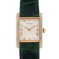 Yellow gold-tone 18kt yellow gold case with a green leather strap. Fixed yellow gold-tone bezel with diamond set 18kt yellow gold. Silver-tone dial with yellow gold-tone hands and Roman numeral hour markers. Dial Type: Analog. Quartz movement. Rectangle case shape, case size: 21 mm. Fold over clasp with a safety release. Functions: hour, minute. Tank Louis Series. Luxury watch style. Watch label: Swiss Made. Item Variations: 1151. Pre-owned Cartier Tank Louis Quartz Diamond Silver Dial Ladies Watch WA201451. GENERAL Year: Circa 2010 Comments: This Cartier Tank Louis, reference number WA201451 1151, has a manufacturer year of Circa 2010. Box not included, Papers Included . This watch is not waterproof. This watch has a 21mm Yellow Gold Case with Yellow gold bezel, Silver Roman numerals dial and Leather bracelet with Fold clasp. The Quartz movement has Time Only function. The wrist measures 6.75 inches or 17.145 centimeters. The condition is Very Good The watch listed is in stock and the pictures shown are of the actual watch for sale Preowned Item Condition: Very Good CASE Case Material: 18kt Yellow Gold Case Shape: Rectangle BAND Band Material: Leather Band Type: Strap Band Color: Green Clasp: Fold Over with Safety Release DIAL Dial Color: Silver-tone Type: Analog Hands: Yellow Gold-tone Dial Markers: Roman Numeral Bezel: Fixed Bezel Color: Yellow Gold-tone Bezel Material: Diamond Set 18kt Yellow Gold INFORMATION Brand: Cartier Series: Tank Collection Name: Tank Louis Gender: Womens Model: WA201451 Watch Label: Swiss Made Movement: Quartz FEATURES Functions: Hour, Minute Watch Features: Analog, Gold, Leather, Diamond ADDITIONAL INFO Watch Style: Luxury Warranty: 1 Year Jomashop Warranty Jomashop Sku: PRE-P-CRT105012 Item Variation: 1151 Department: Watches