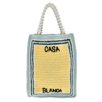 Casablanca Ladies Tote. SKU: APS24BAG09401-MULTI. Barcode: 5056626896218. Color: Multicolor. Casablanca Crochet Tote Bag With Embroidered Logo. This crochet tote bag features an embroidered logo, a rectangular body, two faux pearl top handles, striped detailing, and an embroidered logo on the front of the main compartment. It has an open top with front and back compartments. 100% Cotton. GENERAL Color: Multicolor INFORMATION Brand: Casablanca Gender: Womens Model: APS24BAG09401-MULTI DETAILS Material: Cotton Closure: Open ADDITIONAL INFO UPC Code: 5056626896218 Jomashop Sku: Z-SAL9U Department: Bags Category: Tote Bags