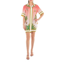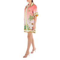 Casablanca Ladies Dresses. Fashion category: Shirts & Blouses. SKU: WS24-DR-038-03-JOYAUX DAFRIQUE PINK. Color: Pink. Casablanca Ladies Pink Joyaux DAfrique Silk Shirt. Crafted from pure silk, this shirt features an all-over graphic ombre print and a logo print on the rear. It has a camp collar, concealed front button fastening, short sleeves, and a chest patch pocket. The shirt is finished with a straight hem for a sleek, modern look. Silk 100% Made in Italy. GENERAL Color: Pink INFORMATION Brand: Casablanca Gender: Womens Model: WS24-DR-038-03-JOYAUX DAFRIQUE PINK DETAILS Category: Dresses Apparel Type: Shirts & Blouses Material: Silk ADDITIONAL INFO Jomashop Sku: -3JOYAUXDAFRIQUEPINK Department: Clothing