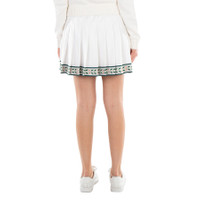 Casablanca Ladies Bottoms. Fashion category: Skirts. SKU: WPS24SK03201-LAUREL. Color: White. Casablanca Ladies White Pleated Silk Miniskirt. This silk twill weave skirt features a satin finish with full pleats and a high-waisted design. It has a concealed side zip fastening, a contrasting hem, and is fully lined. The skirt is cut to an above-knee length for a sleek and stylish look. Material: Silk/Polyester. GENERAL Color: White INFORMATION Brand: Casablanca Gender: Womens Model: WPS24SK03201-LAUREL DETAILS Category: Bottoms Apparel Type: Skirts Material: Silk/Polyester ADDITIONAL INFO Jomashop Sku: -WPS24SK03201LAUREL Department: Clothing