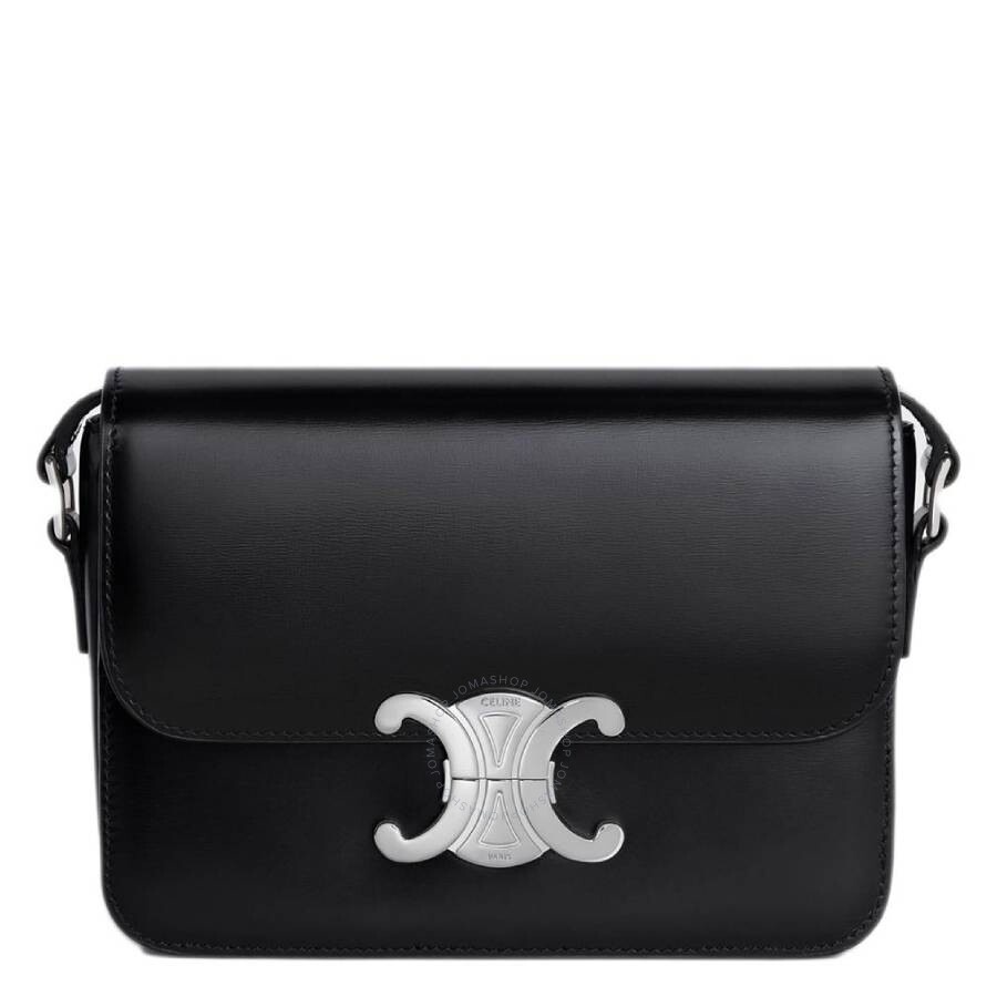 Celine Ladies Shoulder Bag. SKU: 188423BF4.38SI. Barcode: 3665951666452. Color: Black. Size: 7 x 5 x 3". Celine Shiny Calfskin Teen Triomphe Bag In Black. The Teen Triomphe Bag, crafted from calfskin with a lambskin lining and silver-finish hardware, features a Triomphe metallic closure, three inner compartments, an inner zipped pocket, an inner flat pocket, and an adjustable strap with a drop range of 14 to 20 inches, allowing for both cross-body and shoulder carry. Material: Calfskin. GENERAL Size Info: 7 x 5 x 3" Brand Type: Designer Color: Black INFORMATION Brand: Celine Gender: Womens Model: 188423BF4.38SI DETAILS Material: Calfskin Closure: Push Lock DIMENSIONS Size: Mini ADDITIONAL INFO UPC Code: 3665951666452 Jomashop Sku: Z-9S2C2 Department: Bags Category: Shoulder Bag