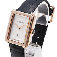 18 carat beige gold case with a black alligator leather strap. Fixed bezel. Opaline guilloche dial with rose gold-tone hands. Dial Type: Analog. Date display at the 6 o'clock position. Quartz movement. Scratch resistant sapphire crystal. Pull / push crown. Case size: 26.7 mm x 34.6 mm. Case thickness: 7.33 mm. Rectangle case shape. Buckle clasp. Water resistant at 30 meters / 100 feet. Functions: date, hour, minute. Luxury watch style. Watch label: Swiss Made. Chanel Boy-Friend Ladies Watch H4313. INFORMATION Brand: Chanel Series: Boy-Friend Collection Name: Boy-Friend Gender: Womens Model: H4313 Watch Label: Swiss Made Movement: Quartz CASE Case Size: 34.6 mm x 26.7 mm Case Thickness: 7.33 mm Case Material: 18kt Beige Gold Case Shape: Rectangle BAND Band Material: Alligator Leather Band Type: Strap Band Color: Black Clasp: Buckle DIAL Dial Color: Opaline Guilloché Type: Analog Crystal: Scratch Resistant Sapphire Hands: Rose Gold-tone Bezel: Fixed Crown: Pull / Push FEATURES Water Resistance: 30 meters / 100 feet Calendar: Date display at the 6 o'clock position Functions: Date, Hour, Minute Watch Features: Leather, Gold, Analog, Alligator Leather ADDITIONAL INFO Watch Style: Luxury Warranty: 2 Year Jomashop Warranty Jomashop Sku: CNH4313 Department: Watches Category: Watches