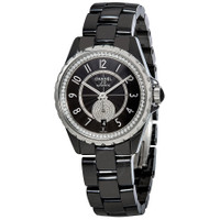 Black high-tech ceramic case with a black high-tech ceramic bracelet. Fixed diamond-set bezel. Black guilloche dial with silver-tone hands and Arabic numeral hour markers. Dial Type: Analog. Date display at the 6 o'clock position. Second sub-dial. Automatic movement with a 42-hour power reserve. Pull / push crown. Case size: 36.5 mm. Round case shape. Water resistant at 100 meters / 330 feet. Functions: date, hour, minute, second. Additional Info: bezel set with 69 diamonds (~0.60 carat), seconds counter with 68 diamonds (~0.10 carat). Luxury watch style. Watch label: Swiss Made. Chanel J12-365 Automatic Ladies Watch H3840. INFORMATION Brand: Chanel Series: J12-365 Collection Name: J12-365 Gender: Womens Model: H3840 Watch Label: Swiss Made Movement: Automatic Power Reserve: 42 hours CASE Case Size: 36.5 mm Case Material: Black High-Tech Ceramic Case Shape: Round Case Back: Solid BAND Band Material: High-Tech Ceramic Band Type: Bracelet Band Color: Black DIAL Dial Color: Black Guilloché Type: Analog Crystal: Scratch Resistant Sapphire Hands: Silver-tone Dial Markers: Arabic Numeral Sub Dials: One - Small Second Bezel: Fixed Diamond-set Crown: Pull / Push FEATURES Water Resistance: 100 meters / 330 feet Calendar: Date display at the 6 o'clock position Functions: Date, Hour, Minute, Second Watch Features: Diamond, Ceramic, Analog ADDITIONAL INFO Watch Style: Luxury Warranty: 2 Year Jomashop Warranty UPC Code: 3599594045100 Additional Info: Bezel set with 69 diamonds (~0.60 carat), Seconds counter with 68 diamonds (~0.10 carat) Jomashop Sku: CNH3840 Department: Watches Category: Watches