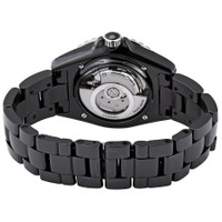 Black (highly resistant) ceramic case and bracelet. Uni-directional rotating black (highly resistant) ceramic bezel with a steel rim. Black dial with silver-tone hands and diamond hour markers. Minute markers around the outer rim. Dial Type: Analog. Date display between 4 and 5 o'clock position. Chanel calibre 12.1 automatic movement. Scratch resistant sapphire crystal. Screw down crown. Transparent case back. Round case shape. Case size: 38 mm. Case thickness: 12.6 mm. Hidden fold over clasp. Water resistant at 200 meters / 660 feet. Functions: date, hour, minute, second. J12 Series. Dress watch style. Watch label: Swiss Made. Chanel J12 Automatic Diamond Black Dial Ladies Watch H5702. INFORMATION Brand: Chanel Series: J12 Collection Name: J12 Gender: Womens Model: H5702 Watch Label: Swiss Made Movement: Automatic Engine: Chanel Calibre 12.1 CASE Case Size: 38 mm Case Thickness: 12.6 mm Case Material: (Highly Resistant) Ceramic Case Shape: Round Case Back: Transparent BAND Band Material: (Highly Resistant) Ceramic Band Type: Bracelet Band Color: Black Clasp: Hidden Fold Over DIAL Dial Color: Black Type: Analog Crystal: Scratch Resistant Sapphire Hands: Luminous Silver-tone Dial Markers: Diamond Second Markers: Minute Markers around the outer rim Luminiscence: Hands Bezel: Uni-directional Rotating Bezel Color: Black Bezel Material: (Highly Resistant) Ceramic with a Steel Rim Crown: Screw Down FEATURES Water Resistance: 200 meters / 660 feet Calendar: Date display between 4 and 5 o'clock position Functions: Date, Hour, Minute, Second Watch Features: Diamond, Ceramic, Analog ADDITIONAL INFO Watch Style: Dress Warranty: 2 Year Jomashop Warranty UPC Code: 3599594131117 Jomashop Sku: CNH5702 Department: Watches Category: Watches