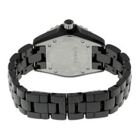 Black ceramic case with a black ceramic bracelet. Uni-directional rotating stainless steel bezel with a black ceramic ring. Black dial with luminous black hands and index hour markers. Minute markers around the outer rim. Dial Type: Analog. Luminescent hands and markers. Quartz movement. Scratch resistant sapphire crystal. Screw down crown. Solid case back. Round case shape. Case size: 33 mm. Case thickness: 11 mm. Band width: 15 mm. Hidden fold over clasp. Water resistant at 200 meters / 660 feet. Functions: hour, minute, second. Additional Info: in general, suitable for professional marine activity and serious surface water sports, but not scuba diving. Luxury watch style. Watch label: Swiss Made. Chanel J12 Black Dial Black Ceramic Ladies Watch H3828. INFORMATION Brand: Chanel Series: J12 Collection Name: J12 Gender: Womens Model: H3828 Watch Label: Swiss Made Movement: Quartz CASE Case Size: 33 mm Case Thickness: 11 mm Case Material: Ceramic Case Shape: Round Case Back: Solid BAND Band Material: Ceramic Band Type: Bracelet Band Color: Black Band Width: 15 mm Clasp: Hidden Fold Over DIAL Dial Color: Black Type: Analog Crystal: Scratch Resistant Sapphire Hands: Luminous Black Dial Markers: Index Second Markers: Minute Markers around the outer rim Luminiscence: Hands and Markers Bezel: Uni-directional Rotating Bezel Color: Silver-tone Bezel Material: Stainless Steel with a Black Ceramic Ring Crown: Screw Down FEATURES Water Resistance: 200 meters / 660 feet Functions: Hour, Minute, Second Watch Features: Stainless Steel, Ceramic, Analog ADDITIONAL INFO Watch Style: Luxury Warranty: 2 Year Jomashop Warranty UPC Code: 3599594045032 Additional Info: In general, suitable for professional marine activity and serious surface water sports, but not scuba diving Jomashop Sku: CNH3828 Department: Watches Category: Watches