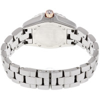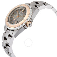 Grey titanium ceramic case with a grey titanium ceramic bracelet. Uni-directional 18kt beige gold bezel. Grey dial with gold-tone hands and Arabic numeral hour markers. Minute markers around the inner ring. Dial Type: Analog. Luminescent hands and markers. Date display between 4 and 5 o'clock position. Automatic movement with a 42-hour power reserve. Scratch resistant sapphire crystal. Screw down crown. Solid case back. Round case shape, case size: 33 mm. Hidden fold over clasp. Water resistant at 200 meters / 660 feet. Functions: date, hour, minute, second. J12 Series. Luxury watch style. Watch label: Swiss Made. Chanel J12 Grey Dial Titanium Ceramic Automatic Ladies Watch H4197. INFORMATION Brand: Chanel Series: J12 Collection Name: J12 Gender: Womens Model: H4197 Watch Label: Swiss Made Movement: Automatic Power Reserve: 42 hours CASE Case Size: 33 mm Case Material: Titanium Ceramic Case Shape: Round Case Back: Solid BAND Band Material: Titanium Ceramic Band Type: Bracelet Band Color: Grey Clasp: Hidden Fold Over DIAL Dial Color: Grey Type: Analog Crystal: Scratch Resistant Sapphire Hands: Gold-tone Dial Markers: Arabic Numeral Second Markers: Minute Markers around the inner ring Luminiscence: Hands and Markers Bezel: Uni-directional Bezel Material: 18kt Beige Gold Crown: Screw Down FEATURES Water Resistance: 200 meters / 660 feet Calendar: Date display between 4 and 5 o'clock position Functions: Date, Hour, Minute, Second Watch Features: Titanium, Gold, Ceramic, Analog ADDITIONAL INFO Watch Style: Luxury Warranty: 2 Year Jomashop Warranty Jomashop Sku: CNH4197 Department: Watches Category: Watches