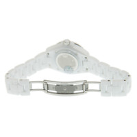 White ceramic case with a white ceramic bracelet. Uni-directional rotating stainless steel bezel with a white ceramic ring. White dial with luminous silver-tone hands and Arabic numeral hour markers. Minute markers around the outer rim. Dial Type: Analog. Luminescent hands. Quartz movement. Scratch resistant sapphire crystal. Screw down crown set with a white ceramic cabochon. Solid case back. Round case shape. Case size: 33 mm. Case thickness: 12.94 mm. Fold over clasp. Water resistant at 200 meters / 660 feet. Functions: hour, minute, second. Additional Info: original box, international warranty card, manual (complete accessories). J12 Series. Luxury watch style. Watch label: Swiss Made. Chanel J12 Phantom White Dial Ladies Watch H6345. INFORMATION Brand: Chanel Series: J12 Collection Name: J12 Gender: Womens Model: H6345 Watch Label: Swiss Made Movement: Quartz CASE Case Size: 33 mm Case Thickness: 12.94 mm Case Material: Ceramic Case Shape: Round Case Back: Solid BAND Band Material: Ceramic Band Type: Bracelet Band Color: White 1 Clasp: Fold Over DIAL Dial Color: White Type: Analog Crystal: Scratch Resistant Sapphire Hands: Luminous Silver-tone Dial Markers: Arabic Numeral Second Markers: Minute Markers around the outer rim Luminiscence: Hands Bezel: Uni-directional Rotating Bezel Color: Silver-tone Bezel Material: Stainless Steel with a White Ceramic Ring Crown: Screw Down with a White Ceramic Cabochon FEATURES Water Resistance: 200 meters / 660 feet Functions: Hour, Minute, Second Watch Features: Stainless Steel, Ceramic, Analog ADDITIONAL INFO Watch Style: Luxury Warranty: 2 Year Jomashop Warranty UPC Code: 3599594150736 Additional Info: Original Box, Manual (Complete Accessories) Jomashop Sku: CNHH6345 Department: Watches Category: Watches