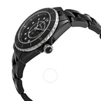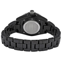 Black ceramic case with a black ceramic bracelet. Uni-directional rotating stainless steel bezel with a black ceramic ring. Black dial with luminous silver-tone hands and diamond hour markers. Minute markers around the outer rim. Dial Type: Analog. Luminescent hands. Quartz movement. Scratch resistant sapphire crystal. Screw down crown. Solid case back. Round case shape. Case size: 33 mm. Case thickness: 12.94 mm. Hidden fold over clasp. Water resistant at 200 meters / 660 feet. Functions: hour, minute, second. Additional Info: original box, manual (complete accessories). J12 Series. Luxury watch style. Watch label: Swiss Made. Chanel J12 Quartz Diamond Black Dial Ladies Watch H5701. INFORMATION Brand: Chanel Series: J12 Collection Name: J12 Gender: Womens Model: H5701 Watch Label: Swiss Made Movement: Quartz CASE Case Size: 33 mm Case Thickness: 12.94 mm Case Material: Ceramic Case Shape: Round Case Back: Solid BAND Band Material: Ceramic Band Type: Bracelet Band Color: Black Clasp: Hidden Fold Over DIAL Dial Color: Black Type: Analog Crystal: Scratch Resistant Sapphire Hands: Luminous Silver-tone Dial Markers: Diamond Second Markers: Minute Markers around the outer rim Luminiscence: Hands Bezel: Uni-directional Rotating Bezel Color: Silver-tone Bezel Material: Stainless Steel with a Black Ceramic Ring Crown: Screw Down FEATURES Water Resistance: 200 meters / 660 feet Functions: Hour, Minute, Second Watch Features: Diamond, Stainless Steel, Ceramic, Analog ADDITIONAL INFO Watch Style: Luxury Warranty: 2 Year Jomashop Warranty Additional Info: Original Box, Manual (Complete Accessories) Jomashop Sku: CNH5701 Department: Watches Category: Watches