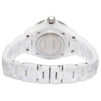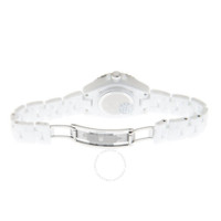 White ceramic case with a white ceramic bracelet. Uni-directional rotating stainless steel with a white ceramic ring bezel. White dial with silver-tone hands and Arabic numeral hour markers. Minute markers around the outer rim. Dial Type: Analog. Luminescent hands. Quartz movement. Scratch resistant sapphire crystal. Screw down crown. Solid case back. Round case shape. Case size: 33 mm. Case thickness: 12.94 mm. Hidden fold over clasp. Water resistant at 200 meters / 660 feet. Functions: hour, minute, second. J12 Series. Luxury watch style. Watch label: Swiss Made. Chanel J12 Quartz White Dial Ladies Watch H5698. INFORMATION Brand: Chanel Series: J12 Collection Name: J12 Gender: Womens Model: H5698 Watch Label: Swiss Made Movement: Quartz CASE Case Size: 33 mm Case Thickness: 12.94 mm Case Material: Ceramic Case Shape: Round Case Back: Solid BAND Band Material: Ceramic 1 Band Type: Bracelet Band Color: White Clasp: Hidden Fold Over DIAL Dial Color: White Type: Analog Crystal: Scratch Resistant Sapphire Hands: Silver-tone Dial Markers: Arabic Numeral Second Markers: Minute Markers around the outer rim Luminiscence: Hands Bezel: Uni-directional Rotating Bezel Color: Silver-tone Bezel Material: Stainless Steel with a White Ceramic Ring Crown: Screw Down FEATURES Water Resistance: 150 meters / 500 feet Functions: Hour, Minute, Second Watch Features: Stainless Steel, Ceramic, Analog ADDITIONAL INFO Watch Style: Luxury Warranty: 2 Year Jomashop Warranty Jomashop Sku: CNH5698 Department: Watches Category: Watches