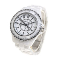 White ceramic case and bracelet. Uni-directional rotating white ceramic bezel. White dial with black hands and Arabic numeral hour markers. Minute markers around the outer rim. Dial Type: Analog. Luminescent hands. Quartz movement. Scratch resistant sapphire crystal. Screw down crown. Solid case back. Round case shape, case size: 33 mm. Fold over clasp with a safety release. Water resistant at 200 meters / 660 feet. Functions: hour, minute, second. J12 Series. Luxury watch style. Watch label: Swiss Made. Chanel J12 Quartz White Dial Ladies Watch H9763. CASE Case Size: 33 Case Material: Ceramic Case Shape: Round Case Back: Solid BAND Band Material: Ceramic Band Type: Bracelet Band Color: White Clasp: Fold Over with Safety Release DIAL Dial Color: White Type: Analog Crystal: Scratch Resistant Sapphire Hands: Black Dial Markers: Arabic Numeral Second Markers: Minute Markers around the outer rim Luminiscence: Hands Bezel: Uni-directional Rotating Bezel Color: White Bezel Material: Ceramic Crown: Screw Down INFORMATION Brand: Chanel Series: J12 Collection Name: J12 Gender: Womens Model: H9763 Watch Label: Swiss Made Movement: Quartz FEATURES Water Resistance: 200 meters / 660 feet Functions: Hour, Minute, Second Watch Features: Ceramic, Analog ADDITIONAL INFO Watch Style: Luxury Warranty: 2 Year Jomashop Warranty Jomashop Sku: CNHH9763 Department: Watches