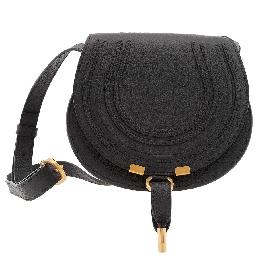 Chloe Ladies Shoulder Bag. SKU: CHC22AS680I31001. Color: Black. Size: W: 7.1" x H: 6.7: x D: 3.9". Chloe Black Leather Small Marcie Saddle Bag. The small "Marcie" bag by Chloe is crafted in grained calfskin leather with an antique gold finishing. It features an adjustable leather strap closure, linen lining, a main compartment, 1 slip pocket and an adjustable strap for shoulder/crossbody wear. GENERAL Size Info: W: 7.1" x H: 6.7: x D: 3.9" Brand Type: Designer Color: Black INFORMATION Brand: Chloe Gender: Womens Model: CHC22AS680I31001 DETAILS Material: Leather Closure: Flap DIMENSIONS Size: Mini ADDITIONAL INFO UPC Code: 7613386514035 Jomashop Sku: Z-2TVG7 Department: Bags Category: Shoulder Bag