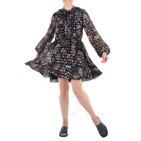 Brand: Chloe. SKU: CHC20SRO793204ZA. Color: Blue. Chloe Blue Floral Silk Georgette Dress. Featuring multicolor floral print, lurex embroidery, pleated ruffled collar, regular fit, puffed sleeves, drawstring waist, flounced bottom and hidden buttons front fastening. GENERAL Color: Blue INFORMATION Brand: Chloe Gender: Womens Model: CHC20SRO793204ZA DETAILS Category: Dresses Apparel Type: Casual Dresses ADDITIONAL INFO Jomashop Sku: -CHC20SRO793204ZA Department: Apparel