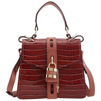 Chloe Ladies Shoulder Bag. SKU: CHC19WS205A87 26K. Color: Chestnut Brown. Size: 25 x 22 x 10 cm. . The Chloe Calfskin Crocodile Embossed Small Aby Day Shoulder Bag is a sophisticated and structured accessory, crafted from luxurious crocodile-embossed calfskin leather. Designed for versatility, it features an adjustable leather shoulder strap and a sturdy top handle for multiple carrying options. The bag is adorned with polished light gold and silver-tone hardware, including a signature gold lock and key detail on the front. The flap opens to reveal a well-organized beige fabric-lined interior, complete with partitioned compartments, a zipper pocket, and patch pockets for effortless organization. 100% Leather. GENERAL Size Info: 25 x 22 x 10 cm Brand Type: Designer Color: Chestnut Brown INFORMATION Brand: Chloe Gender: Womens Model: CHC19WS205A87 26K DETAILS Material: Leather ADDITIONAL INFO UPC Code: 7613385016790 Jomashop Sku: Z-7A8EK Department: Bags Category: Shoulder Bag