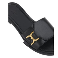 Chloe Ladies Shoes. SKU: CHC24S00UH3001. Color: Black. Shoe Style: Mules. Vamp Style: Metal Hardware. Chloe Gold-Toned Marcie Buckle Leather Slides. Features a smooth calfskin upper and a TPU sole, offering a comfortable, easy-to-wear design. It is accented with a stitched leather insole and the signature gold-toned Marcie buckle. The slip-on mule has a wide upper and a versatile sole suitable for both beach and city outings, with the gold hardware adding a refined touch to its casual design. 100% Calfskin. Please visit the brand website for sizing information. GENERAL Brand Type: Designer INFORMATION Brand: Chloe Model: CHC24S00UH3001 Gender: Womens DETAILS Category: Sandals Shoe Style: Mules Shoe Style: Mules Color: Black Shoe Vamp Style: Metal Hardware Upper Material: Calfskin Lining Material: Calfskin Sole Material: Leather ADDITIONAL INFO Jomashop Sku: -CHC24S00UH3001 Department: Shoes