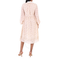 Chloe Ladies Dresses. SKU: CHC21SRO193306A5. Color: Dew Pink. Chloe High-Neck Dress With Print in Dew Pink. Gathered at the waist, this high-neck dress with print reveals a "C micro flower" print on fluid silk georgette. The contrasting white collar and pintucks at the chest add decorative detail to this romantic silk dress. A signature C frieze embellishes the hem. Long-sleeved dress. Mother-of-pearl buttons along the front. 100% Silk. GENERAL Color: Dew Pink INFORMATION Brand: Chloe Gender: Womens Model: CHC21SRO193306A5 DETAILS Category: Dresses Apparel Type: Casual Dresses Material: Silk ADDITIONAL INFO Jomashop Sku: -CHC21SRO193306A5 Department: Apparel