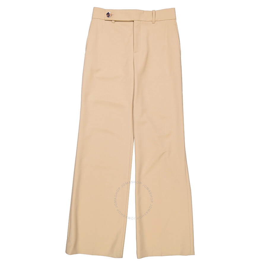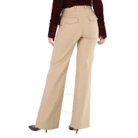 Chloe Ladies Bottoms. Fashion category: Pants & Leggings. SKU: CHC21WPA0606820L. Color: Barley Brown. Chloe Ladies Barley Brown Flared Pants. Crafted from stretch wool canvas fabric, this pair of pants features a flared silhouette, loose fit, an off-center waistband closure, belt loops, side pockets, rear flap pockets, and a relaxed fit. 99% Virgin wool, 1% Elastane. GENERAL Color: Barley Brown INFORMATION Brand: Chloe Gender: Womens Model: CHC21WPA0606820L DETAILS Category: Bottoms Apparel Type: Pants & Leggings Material: Virgin Wool, Elastane ADDITIONAL INFO Jomashop Sku: -CHC21WPA0606820L Department: Apparel