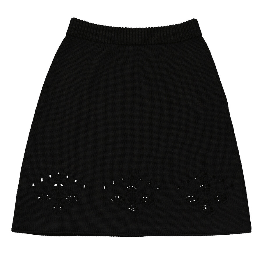 Chloe Ladies Black Pointelle-Knit Wool Miniskirt