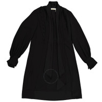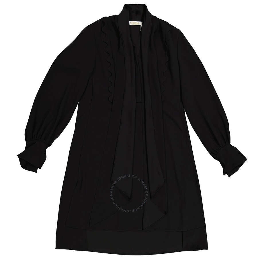 Chloe Ladies Dresses. SKU: CHC20SRO161370. Color: Black. Chloe Ladies Black Pussy Bow Scallop Shift Dress. Featuring a band collar with a pussy bow detail to the front, pleated details, scalloped details, a loose fit, long gathered blouson sleeves and a flat step hem. Made in France. GENERAL Color: Black INFORMATION Brand: Chloe Gender: Womens Model: CHC20SRO161370 DETAILS Category: Dresses Apparel Type: Casual Dresses ADDITIONAL INFO Jomashop Sku: -CHC20SRO161370 Department: Apparel