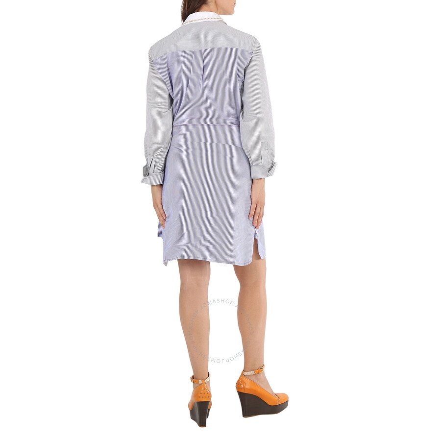 Chloe Ladies Dresses. Fashion category: Casual Dresses. SKU: CHC21SRO7504599G. Color: Blue/White 1. Chloe Ladies Blue / White Striped Shirt Dress. Made from cotton poplin, this shirt dress features long-sleeves, buttoned cuffs, a pointed collar, zig-zag embroidery for decorative detail, front button fastening, a slightly curved hem and finished with a Chloe flower embroidery at the chest. 100% Cotton. GENERAL Color: Blue/White 1 INFORMATION Brand: Chloe Gender: Womens Model: CHC21SRO7504599G DETAILS Category: Dresses Apparel Type: Casual Dresses Material: Cotton ADDITIONAL INFO Jomashop Sku: -CHC21SRO7504599G Department: Apparel