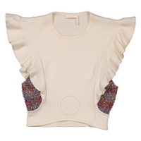 Chloe Ladies Tops. Fashion category: Cardigans & Sweaters. SKU: CHC22SMH02570100. Color: Brilliant White. Chloe Ladies Brilliant White Cropped Knit Top. This knitted top features a cropped style, crochet side panels, modern silhouette and finished with ruffles along the shoulders and sides. 78% Virgin wool, 17% Silk, 5% Cashmere. GENERAL Color: Brilliant White INFORMATION Brand: Chloe Gender: Womens Model: CHC22SMH02570100 DETAILS Category: Tops Apparel Type: Shirts & Blouses ADDITIONAL INFO Jomashop Sku: -CHC22SMH02570100 Department: Apparel