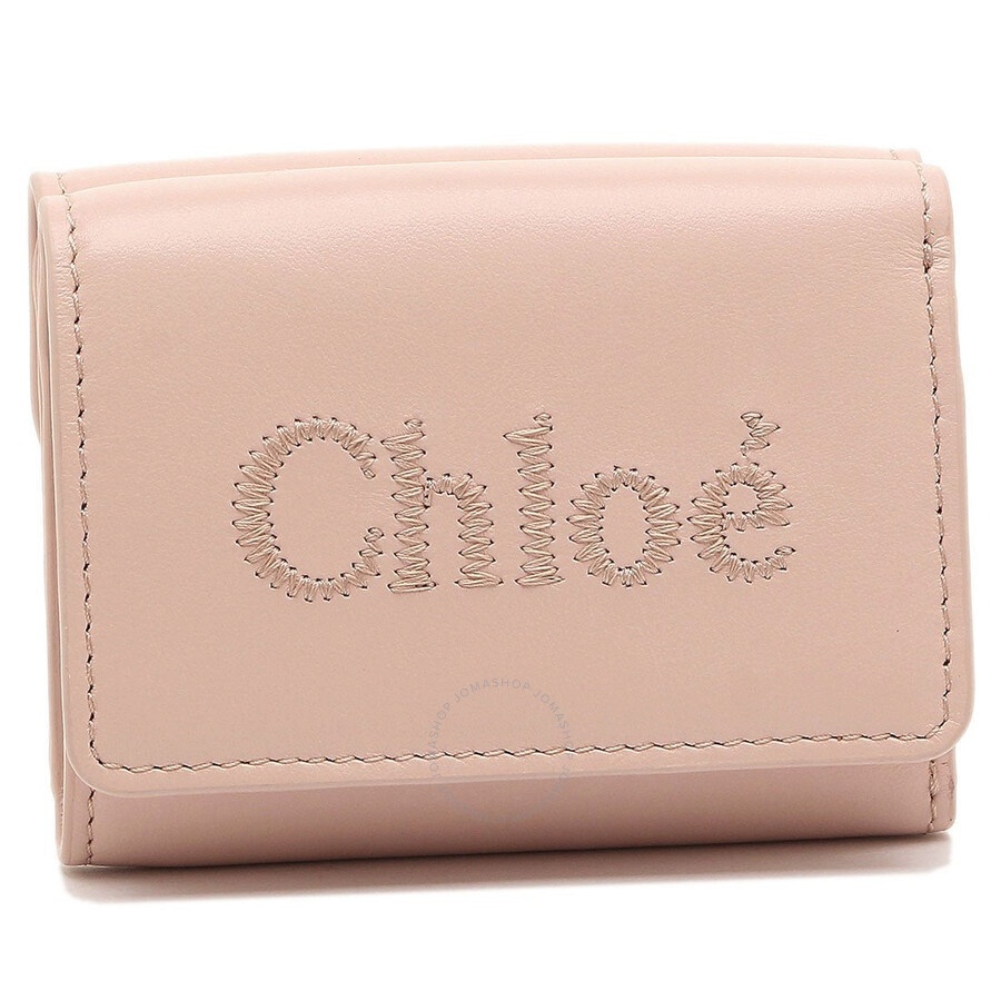 Chloe Ladies Wallets. SKU: CHC23AP875I10. Barcode: 7614027006520. Color: Cement Pink. Chloe Ladies Cement Pink Trifold Leather Wallet. Crafted from smooth calfskin, this wallet features a press stud pocket, a banknote compartment, a button pocket and tone-on-tone front lettering logo. GENERAL Color: Cement Pink INFORMATION Brand: Chloe Gender: Womens Model: CHC23AP875I10 DETAILS Material: Calfskin Closure: Snap ADDITIONAL INFO UPC Code: 7614027006520 Jomashop Sku: Z-59YJM Department: Bags Category: Wallets