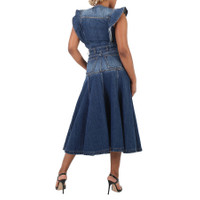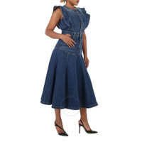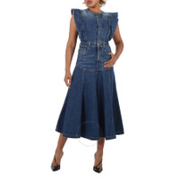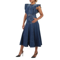 Chloe Ladies Dresses. Fashion category: Casual Dresses. SKU: CHC22SDR2415240X. Color: Dusky Blue. Chloe Ladies Dusky Blue Ruffled Pleated Denim Dress. A denim maxi-dress featuring a jewel neck, cap sleeves, five-pocket style, belt loops, pleated skirt and concealed button front. 100% cotton. Made in Italy. GENERAL Color: Dusky Blue INFORMATION Brand: Chloe Gender: Womens Model: CHC22SDR2415240X DETAILS Category: Dresses Apparel Type: Casual Dresses ADDITIONAL INFO Jomashop Sku: -CHC22SDR2415240X Department: Apparel
