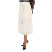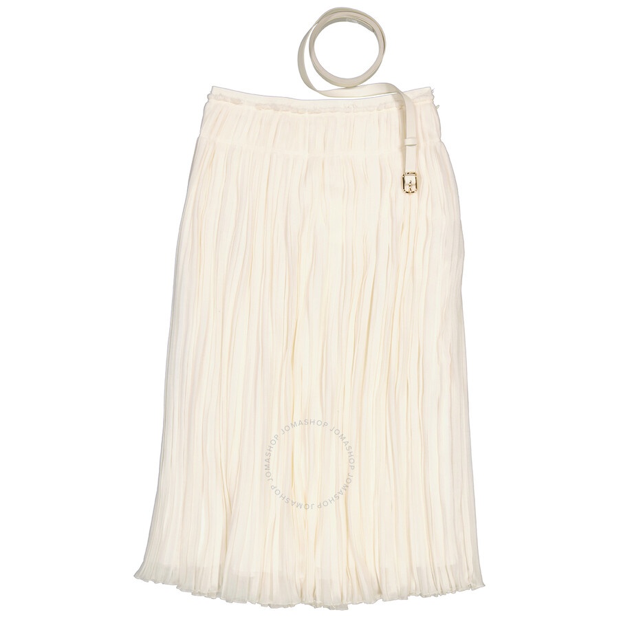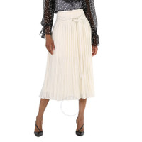 Chloe Ladies Bottoms. Fashion category: Skirts. SKU: CHC21WJU26061112. Material: Lambskin;Silk;Wool. Color: Eden White. Chloe Ladies Eden Pleated Mid-Length Skirt. Made from lower impact wool gauze, this pleated mid-length skirt features two rows of stitching gathering the pleats at the hips for an elegant silhouette. Tonal leather waist trim. Wool skirt. Straight mid-length skirt. Concealed side zipper & hook. Pleated mid-length skirt main material: 100% Virgin wool. Waistband: 100% Lambskin. Lining: 100% Silk. Made in France. GENERAL Color: Eden White INFORMATION Brand: Chloe Gender: Womens Model: CHC21WJU26061112 DETAILS Category: Bottoms Apparel Type: Skirts Material: Lambskin, Silk, Wool ADDITIONAL INFO Jomashop Sku: -CHC21WJU26061112 Department: Apparel