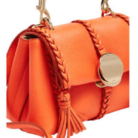 Chloe Ladies Shoulder Bag. SKU: CHC23AS575J58815. Material: Calfskin. Color: Orange. Size: W: 8.7" H: 5.5" x D: 3.5". Chloe Mini Penelope Soft Shoulder Bag. hloe Mini Penelope Soft Shoulder Bag. Crafted from nappa lambskin, the Penelope mini soft shoulder bag offers a compact version of the larger bag's slouchy silhouette with a relaxed, feminine design. It features leather braiding, dangling tassels, and contrasting hardware, main compartment, and an internal flat pocket. The signature metallic piece on the flap secures the closure, matching the hooks attaching the strap. This versatile mini bag can be worn on the arm, shoulder, or cross-body. 100% Calfskin, GENERAL Size Info: W: 8.7" H: 5.5" x D: 3.5" Color: Orange INFORMATION Brand: Chloe Gender: Womens Model: CHC23AS575J58815 DETAILS Material: Calfskin, Lambskin Closure: Flap ADDITIONAL INFO UPC Code: 7614027151961 Jomashop Sku: Z-427P6 Department: Bags Category: Shoulder Bag