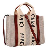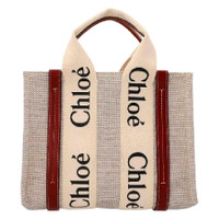 Brand: Chloe. SKU: CHC22AP237I2690U. Material: Calfskin;Linen. Closure Type: Open. Color: White/Brown. Size: W: 7.9" x H: 5.5" x D: 1.6". Chloe Mini Woody Linen Logo Tote Bag. This tote bag is made from linen canvas and shiny calfskin, adorned with a Woody ribbon detail. It offers multiple carrying options: hand, long shoulder, and cross-body. The design includes one strap, one top handle, and a spacious main compartment with an internal flat pocket. The bag’s sleek, contemporary lines are enhanced by contrasting vertical leather strips and the iconic brand logo ribbon. 100% Linen, 100% Calfskin. GENERAL Brand Type: Designer Size Info: W: 7.9" x H: 5.5" x D: 1.6" Color: White/Brown INFORMATION Brand: Chloe Gender: Womens Model: CHC22AP237I2690U DETAILS Material: Calfskin, Linen Closure: Open ADDITIONAL INFO UPC Code: 7613386449252 Jomashop Sku: Z-JD9X9 Department: Bags Category: Tote Bags