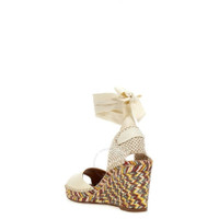 Chloe Ladies Sandals. Pila series. SKU: CHC23U836DM122. Color: Eggshell. Chloe Piia Ankle-Wrap Wedge Sandals. The Chloe 'Piia' wedge sandal showcases a woven fabric and leather upper, complemented by a tie closure around the ankle. It features a rope insole and a rubber sole, with an open-toe design. Please visit the brand website for sizing information. GENERAL Brand Type: Designer Collection Name: Pila INFORMATION Brand: Chloe Series: Pila Model: CHC23U836DM122 Gender: Womens DETAILS Category: Sandals Shoe Style: Wedges Shoe Style: Wedges Color: Eggshell Shoe Vamp Style: Slip-on ADDITIONAL INFO Jomashop Sku: -CHC23U836DM122 Department: Shoes
