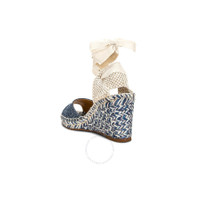 Chloe Ladies Sandals. Pila series. SKU: CHC23U836CU45D. Color: Denim. Chloe Piia Espadrille Wedge Sandals. The Piia espadrille wedge, made in Spain, features a denim upper with a recycled cotton and denim material, a jute-wrapped midsole and insole, a leather sole, leather lining, and a wrap-around ankle tie closure, all crafted with lower-impact materials. Material: 87% cotton, 13% hemp, 78% jute, 22% cotton. Made in Spain. Please visit the brand website for sizing information. GENERAL Brand Type: Designer Collection Name: Pila INFORMATION Brand: Chloe Series: Pila Model: CHC23U836CU45D Gender: Womens DETAILS Category: Sandals Shoe Style: Wedges Shoe Style: Wedges Color: Denim Shoe Vamp Style: Slip-on ADDITIONAL INFO Jomashop Sku: -CHC23U836CU45D Department: Shoes