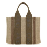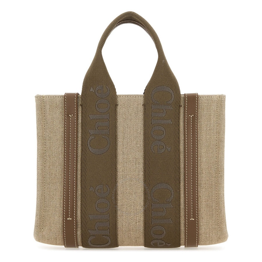 Chloe Ladies Tote. SKU: CHC23AS397L1729. Barcode: 7614027441345. Color: Dark Nude. Size: Width: 10.4" (26.5 cm) x Height: 7.9" (20 cm) x Depth: 3.1" (8 cm). Chloe Small Woody Tote Bag - Dark Nude. This tote bag is crafted from linen canvas and calfskin, featuring two short handles, a removable and adjustable long strap, and one spacious main compartment. It also includes one internal flat pocket and webbing with Chloe logo embroidery. Main material: Linen;Calfskin. GENERAL Size Info: Width: 10.4" (26.5 cm) x Height: 7.9" (20 cm) x De Brand Type: Designer Color: Dark Nude INFORMATION Brand: Chloe Gender: Womens Model: CHC23AS397L1729 DETAILS Material: Calfskin, Linen ADDITIONAL INFO UPC Code: 7614027441345 Jomashop Sku: Z-UTPSY Department: Bags Category: Tote Bags