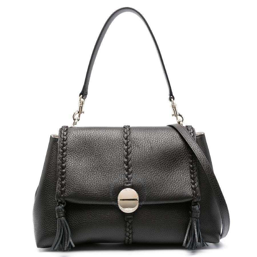 Chloe Ladies Shoulder Bag. SKU: CHC23US569K15-Black. Material: Calfskin. Closure Type: Flap. Color: Black. Size: W: 34cm x H: 24cm x D: 12cm. Chloe Soft Leather Penelope Shoulder Bag. Shoulder bag with an engraved logo and internal logo stamp crafted from Calf leather. It features braid detailing, silver-tone hardware, and a single top handle. The foldover top has a magnetic fastening, while the adjustable, detachable shoulder strap offers versatility. The bag includes a spacious main compartment. Outer: Calf Leather 100%, 100% Fabric. Made in Italy. GENERAL Brand Type: Designer Size Info: W: 34cm x H: 24cm x D: 12cm Color: Black INFORMATION Brand: Chloe Gender: Womens Model: CHC23US569K15-Black DETAILS Material: Calfskin, Fabric Closure: Flap ADDITIONAL INFO UPC Code: 7613386914033 Jomashop Sku: Z-BWDQC Department: Bags Category: Shoulder Bag