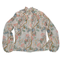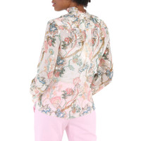 Brand: Chloe. SKU: CHC20SHT173251ZA. Color: White. Chloe White Printed Blouse. Crafted from l crêpe de chine, this printed ladies' blouse reveals a feminine floral motif enhanced with lurex fil coupe jacquard. Featuring a concealed Chloe-engraved mother-of-pearl buttons, ruffled collar and tonal neck tie. GENERAL Color: White INFORMATION Brand: Chloe Gender: Womens Model: CHC20SHT173251ZA DETAILS Category: Tops Apparel Type: Shirts & Blouses ADDITIONAL INFO Jomashop Sku: -CHC20SHT173251ZA Department: Apparel