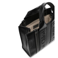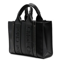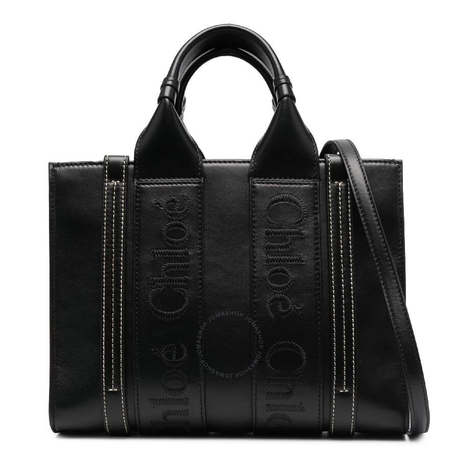 Chloe Ladies Tote. SKU: CHC23US397I60-BLACK. Material: Calfskin;Linen. Closure Type: Open. Color: Black. Size: W: 25.5cm x H: 18.5cm x D: 8.5cm.. Chloe Woody Small Logo Embroidered Leather Tote. Tote crafted from calf leather with an embroidered logo on the front and strap detailing. Features an open top, two top handles, and an adjustable, detachable shoulder strap. Lined with linen, it includes an internal logo patch, a patch pocket, and a spacious main compartment. Finished with gold-tone hardware. 100% Calfskin, 100% Linen. Made in Italy. GENERAL Brand Type: Designer Size Info: W: 25.5cm x H: 18.5cm x D: 8.5cm. Color: Black INFORMATION Brand: Chloe Gender: Womens Model: CHC23US397I60-BLACK DETAILS Material: Calfskin, Linen Closure: Open ADDITIONAL INFO UPC Code: 7613386939609 Jomashop Sku: Z-PFKLB Department: Bags Category: Tote Bags