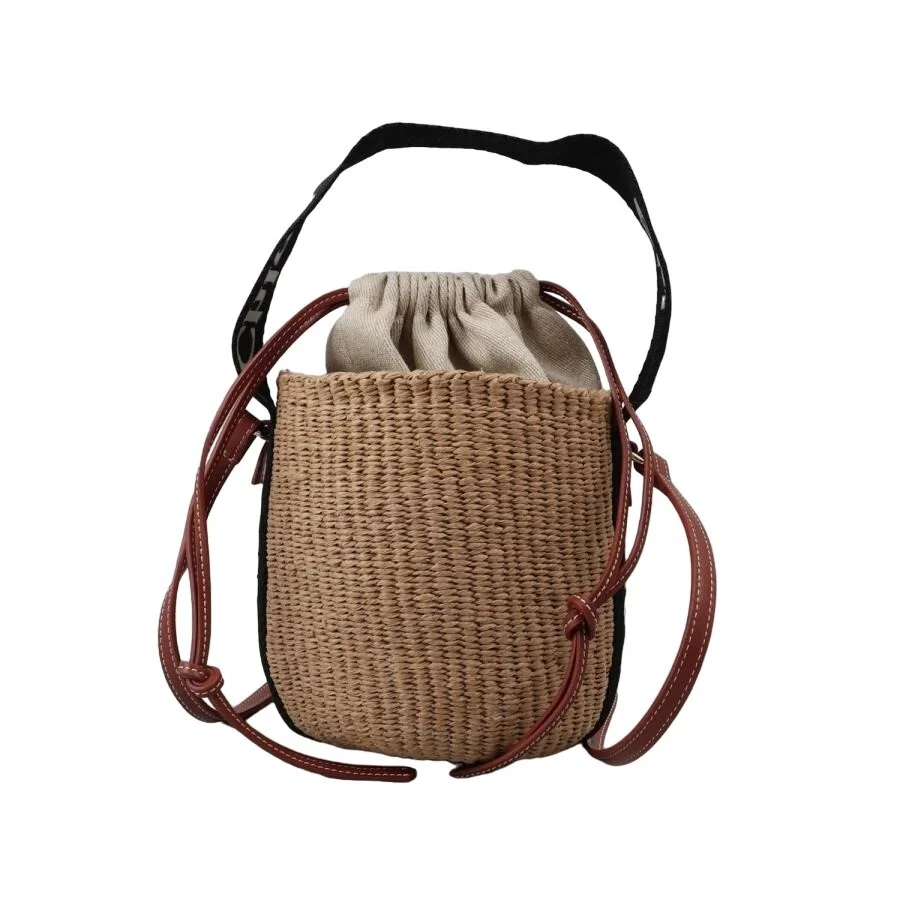 Chloe Ladies Shoulder Bag. SKU: CHC23AS381L18. Color: Black - Beige 1. Chole Woody Natural Fiber Tote Bag. Designed with a chic, compact round shape perfect for summer, this small Woody basket is meticulously handwoven by skilled artisans in Kenya. It features the iconic Chloe logo embroidered on contrasting webbing. The basket includes a leather drawstring closure and a long, adjustable leather strap for versatile shoulder or cross-body wear. It comes with a dust bag for storage. GENERAL Size Info: W: 6.7''- H; 6.3''- D: 6.3'' Color: Black - Beige 1 INFORMATION Brand: Chloe Gender: Womens Model: CHC23AS381L18 DETAILS Closure: Drawstring ADDITIONAL INFO UPC Code: 7614027067538 Jomashop Sku: Z-MKJTK Department: Bags Category: Shoulder Bag