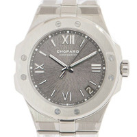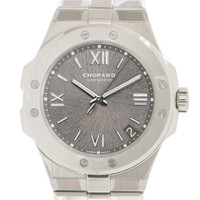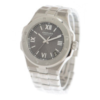 Silver-tone stainless steel case with a brushed & polished stainless steel bracelet. Fixed silver-tone stainless steel bezel. Grey dial with silver-tone hands and Roman numeral,index hour markers. Dial Type: Analog. Luminescent hands and markers. Date display between 4 and 5 o'clock position. Chopard Calibre 01.01-C Automatic movement, containing 40 Jewels, composed of 207 parts, bitting at 28800 vph, and has a power reserve of approximately 60 hours. Scratch resistant sapphire crystal. Screw down crown. Transparent case back. Round case shape, case size: 41 mm, case thickness: 9.70 mm. Hidden folding clasp. Water resistant at 100 meters. Functions: date, hour, minute, second, chronometer. Alpine Eagle Series. Luxury watch style. Watch label: Swiss Made. Chopard Alpine Eagle Automatic Chronometer Grey Dial Men's Watch 298600-3002. CASE Case Size: 41 Case Thickness: 9.70 mm Case Material: Stainless Steel Case Shape: Round Case Back: Transparent BAND Band Material: Stainless Steel Band Type: Bracelet Band Color: Brushed & Polished Clasp: Hidden Folding Clasp DIAL Dial Color: Grey Type: Analog Crystal: Scratch Resistant Sapphire Hands: Silver-tone Dial Markers: Roman Numeral,Index Luminiscence: Hands and Markers Bezel: Fixed Bezel Color: Silver-tone Bezel Material: Stainless Steel Crown: Screw Down INFORMATION Brand: Chopard Series: Alpine Eagle Collection Name: Alpine Eagle Gender: Mens Model: 298600-3002 Watch Label: Swiss Made Movement: Automatic Engine: Chopard Calibre 01.01-C Power Reserve: 60 hours FEATURES Water Resistance: 100 meters Calendar: Date display between 4 and 5 o'clock position Functions: Date, Hour, Minute, Second, Chronometer Watch Features: Analog, Stainless Steel, Chronometer ADDITIONAL INFO Watch Style: Luxury Warranty: 2 Year Jomashop Warranty Jomashop Sku: CP298600-3002 Department: Watches Category: Watches