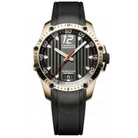 18kt rose gold case with a black rubber strap. Fixed 18kt rose gold bezel. Black dial with rose gold-tone hands and index-Arabic numeral hour markers. Minute markers around the outer rim. Arabic numeral marker appears at the 12 o'clock position. Dial Type: Analog. Luminescent hands and markers. Date display at the 6 o'clock position. Chopard Calibre 01.01-M Automatic movement, containing 31 Jewels, bitting at 28800 vph, and has a power reserve of approximately 60 hours. Scratch resistant sapphire crystal. Screw down crown. Transparent case back. Round case shape, case size: 41 mm, case thickness: 11.3 mm. Folding buckle clasp. Water resistant at 100 meters / 330 feet. Functions: date, hour, minute, second, chronometer. Classic Racing Superfast Series. Luxury watch style. Watch label: Swiss Made. Chopard Classic Racing Superfast Automatic Chronometer Black Dial Men's Watch 161290-5001. CASE Case Size: 41 Case Thickness: 11.3 mm Case Material: 18kt Rose Gold Case Shape: Round Case Back: Transparent BAND Band Material: Rubber Band Type: Strap Band Color: Black Clasp: Folding Buckle DIAL Dial Color: Black Type: Analog Crystal: Scratch Resistant Sapphire Hands: Rose Gold-tone Dial Markers: Index-Arabic Numeral Second Markers: Minute Markers around the outer rim. Arabic Numeral Marker appears at the 12 o'clock position Luminiscence: Hands and Markers Bezel: Fixed Bezel Material: 18kt Rose Gold Crown: Screw Down INFORMATION Brand: Chopard Series: Classic Racing Superfast Collection Name: Classic Racing Superfast Gender: Mens Model: 161290-5001 Watch Label: Swiss Made Movement: Automatic Engine: Chopard Calibre 01.01-M Power Reserve: 60 hours FEATURES Water Resistance: 100 meters / 330 feet Calendar: Date display at the 6 o'clock position Functions: Date, Hour, Minute, Second, Chronometer Watch Features: Rubber, Gold, Chronometer, Analog ADDITIONAL INFO Watch Style: Luxury Warranty: 2 Year Jomashop Warranty Jomashop Sku: CP161290-5001 Department: Watches Category: Watches