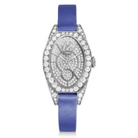 18k white gold case with a blue satin bracelet. Fixed 18 kt white gold bezel set with diamonds bezel. Diamond dial with silver-tone hands and stick hour markers. Arabic numeral marks the 12 o'clock position. Dial Type: Analog. Small seconds sub-dial at the 6 o'clock position. Quartz movement. Scratch resistant sapphire crystal. Solid case back. Case diameter: 24 x 40 mm. Case thickness: 6.7 mm. Oval case shape. Tang clasp. Water resistant at 30 meters / 100 feet. Functions: hour, minute, second. Luxury watch style. Watch label: Swiss Made. Chopard Classique Femme Diamond 18k White Gold Blue Satin Ladies Watch 137228-1001. GENERAL Color: Blue / Gold / White INFORMATION Brand: Chopard Series: Classique Femme Collection Name: Classique Femme Gender: Womens Model: 137228-1001 Watch Label: Swiss Made Movement: Quartz CASE Case Size: 40 mm x 24 mm Case Thickness: 6.7 mm Case Material: 18kt White Gold Case Shape: Oval Case Back: Solid BAND Band Material: Satin Band Type: Strap Band Color: Blue Clasp: Tang DIAL Dial Color: Diamond Type: Analog Crystal: Scratch Resistant Sapphire Hands: Silver-tone Dial Markers: Stick Second Markers: Arabic numeral marks the 12 o'clock position Sub Dials: One - Small Second at the 6 o'clock position Bezel: Fixed 18 kt White Gold set with diamonds FEATURES Water Resistance: 30 meters / 100 feet Functions: Hour, Minute, Second Watch Features: Diamond, Gold, Analog ADDITIONAL INFO Watch Style: Luxury Warranty: 2 Year Jomashop Warranty Jomashop Sku: CP137228-1001 Item Variation: 137228 1001, 137228.1001, 1372281001 Department: Watches Category: Watches