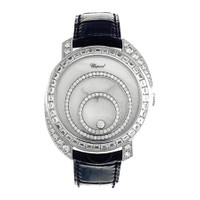 18k white gold case with a black alligator leather strap. Fixed bezel set with diamonds. Mother of pearl dial set with diamonds with silver-tone hands. 6.28 diamond ctw. Dial Type: Analog. Quartz movement. Scratch resistant sapphire crystal. Solid case back. Case diameter: 30 mm. Unique case shape. Tang clasp. Water resistant at 30 meters / 100 feet. Functions: hour, minute. Luxury watch style. Watch label: Swiss Made. Chopard Happy Spirit Diamond Mother of Pearl Dial 18 kt White Gold Ladies Watch 207478-1001. GENERAL Color: Black / Gold / Mother of pearl / White INFORMATION Brand: Chopard Series: Happy Spirit Collection Name: Happy Spirit Gender: Womens Model: 207478-1001 Watch Label: Swiss Made Movement: Quartz CASE Case Size: 30 mm Case Material: 18kt White Gold Case Shape: Unique Case Back: Solid BAND Band Material: Alligator Leather Band Type: Strap Band Color: Black Clasp: Tang DIAL Dial Color: Mother of pearl dial set with diamonds Type: Analog Crystal: Scratch Resistant Sapphire Hands: Silver-tone Bezel: Fixed Bezel Material: Diamond Set FEATURES Water Resistance: 30 meters / 100 feet Functions: Hour, Minute Watch Features: Diamond, Leather, Gold, Analog, Alligator Leather ADDITIONAL INFO Watch Style: Luxury Warranty: 2 Year Jomashop Warranty Jomashop Sku: CP207478-1001 Item Variation: 207478 1001, 207478.1001, 2074781001 Department: Watches Category: Watches