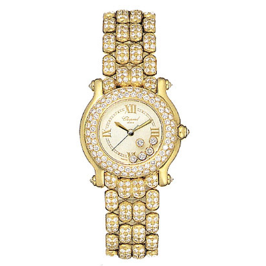 18kt yellow gold case with a 18kt yellow gold with diamonds bracelet. Fixed Diamond bezel. White dial with gold tone hands and gold tone Roman numerals hour markers. Quartz movement. Scratch resistant scratch resistant sapphire crystal. Case diameter: 26mm. Case thickness: 8mm. Hidden deployment clasp. Water resistant at 30 meters / 100 feet. AdditionalInfo: bezel and bracelet set with 188 diamonds; diamond briolette crown; 4 diamond briolette lugs. Chopard Happy Sport Diamond 18kt Yellow Gold Ladies Watch 27/6194-20. GENERAL Color: Gold / White / Yellow INFORMATION Brand: Chopard Series: Happy Sport Collection Name: Happy Sport Gender: Womens Model: 27/6194-20 Watch Label: Swiss Made Movement: Quartz CASE Case Size: 26 mm Case Thickness: 8 mm Case Material: 18kt Yellow Gold Case Shape: Round BAND Band Material: 18kt Yellow Gold With Diamonds Band Type: Bracelet Band Color: Yellow Gold-tone Band Length: 7 inches Clasp: Hidden Deployment DIAL Dial Color: White Type: Analog Crystal: Scratch Resistant Sapphire Hands: Gold Tone Dial Markers: Gold Tone Roman Numerals Bezel: Fixed Bezel Material: Diamond Set Crown: Diamond Briolette FEATURES Water Resistance: 30 meters / 100 feet Functions: Hours/ Minutes/ Seconds Watch Features: Diamond, Gold, Analog ADDITIONAL INFO Watch Style: Luxury Warranty: 2 Year Jomashop Warranty Additional Info: Bezel And Bracelet Set With 188 Diamonds; Diamond Briolette Crown; 4 Diamond Briolette Lugs Jomashop Sku: CP276194-20-YG Item Variation: 27/6194-20 Department: Watches Category: Watches