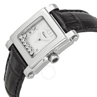 Stainless steel case with a dark blue leather strap. Fixed stainless steel bezel. White dial with 7 floating diamonds and silver-tone hands. Roman numeral mark the 3, 6, 9 and 12 o'clock positions. Dial Type: Analog. Date display at the 4 o'clock position. Quartz movement. Scratch resistant sapphire crystal. Pull / push crown set with a sapphire cabochon. Solid case back. Case diameter: 38 mm. Case thickness: 10 mm. Square case shape. Band width: 16 mm. Deployment clasp. Water resistant at 100 meters/ 330 feet. Functions: hours, minutes, seconds, date. Luxury watch style. Chopard Happy Sport Ladies Watch 278495-3001. GENERAL Color: Blue / Dark / White INFORMATION Brand: Chopard Series: Happy Sport Collection Name: HAPPY SPORT Gender: Womens Model: 278495-3001 Movement: Quartz CASE Case Size: 38 mm Case Thickness: 10 mm Case Material: Stainless Steel Case Shape: Square Case Back: Solid BAND Band Material: Leather Band Type: Strap Band Color: Dark Blue Band Width: 16 mm Clasp: Deployment DIAL Dial Color: White with 7 Floating Diamonds Type: Analog Crystal: Scratch Resistant Sapphire Hands: Silver-tone Second Markers: Roman Numeral mark the 3, 6, 9 and 12 o'clock positions Bezel: Fixed Bezel Color: Silver-tone Bezel Material: Stainless Steel Crown: Pull / Push set with a sapphire cabochon FEATURES Water Resistance: 100 meters / 330 feet Calendar: Date display at the 4 o'clock position Functions: Hours, Minutes, Seconds, Date Watch Features: Diamond, Stainless Steel, Leather, Analog ADDITIONAL INFO Watch Style: Luxury Warranty: 2 Year Jomashop Warranty Jomashop Sku: CP278495-3001 Item Variation: 278495 3001, 278495.3001, 2784953001 Department: Watches Category: Watches