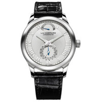 18kt white gold case with a black alligator leather strap. Fixed 18kt white gold bezel. Silver dial with luminous hands and Roman numeral hour markers. Minute markers around the outer rim. Dial Type: Analog. Date display at the 6 o'clock position. Two sub-dials displaying: small second/date and power reserve indicator. Chopard Calibre L.U.C 98.01-L Hand Wind movement, based upon L.U.C 1.98, containing 39 Jewels, composed of 223 parts, bitting at 28800 vph, and has a power reserve of approximately 216 hours. Scratch resistant sapphire crystal. Pull / push crown. Round case shape, case size: 43 mm. Tang clasp. Water resistant at 50 meters / 165 feet. Functions: date, hour, minute, second, power reserve indicator, chronometer. L.u.c Quattro Series. Luxury watch style. Watch label: Swiss Made. Item Variations: 161926 1001, 161926.1001, 1619261001. Chopard L.U.C Quattro Silver Dial White Gold Black Leather Men's Watch 161926-1001. GENERAL Color: Black / Gold / Silver / White CASE Case Size: 43 Case Material: 18kt White Gold Case Shape: Round BAND Band Material: Alligator Leather Band Type: Strap Band Color: Black Clasp: Tang DIAL Dial Color: Silver Type: Analog Crystal: Scratch Resistant Sapphire Hands: Luminous Dial Markers: Roman Numeral Second Markers: Minute Markers around the outer rim Sub Dials: Two - Small Second/Date and Power Reserve Indicator Bezel: Fixed Bezel Material: 18kt White Gold Crown: Pull / Push INFORMATION Brand: Chopard Series: L.U.C Quattro Collection Name: L.U.C Quattro Gender: Mens Model: 161926-1001 Watch Label: Swiss Made Movement: Hand Wind Engine: Chopard Calibre L.U.C 98.01-L Power Reserve: 216 hours / 9 days FEATURES Water Resistance: 50 meters / 165 feet Calendar: Date display at the 6 o'clock position Functions: Date, Hour, Minute, Second, Power Reserve Indicator, Chronometer Watch Features: Alligator Leather, Analog, Power Reserve Indicator, Chronometer, Gold, Leather ADDITIONAL INFO Watch Style: Luxury Warranty: 2 Year Jomashop Warranty Jomashop Sku: CP161926-1001 Item Variation: 161926 1001, 161926.1001, 1619261001 Department: Watches Category: Watches