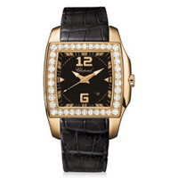 18k rose gold case with a black leather strap. Fixed bezel set with diamonds bezel. Black dial with gold-tone hands and Arabic hour markers. Dial Type: Analog. Date display between 4 and 5 o'clock position. Quartz movement. Scratch resistant sapphire crystal. Pull / push crown. Case diameter: 34.8 mm x 28.9 mm. Tonneau case shape. Water resistant at 30 meters / 100 feet. Functions: date, hour, minute, second. Luxury watch style. Watch label: Swiss Made. Chopard Two O Ten Black Dial Diamond Black Leather Ladies Watch 137468-5001. GENERAL Color: Black / Gold / Rose INFORMATION Brand: Chopard Series: Two O Ten Collection Name: Two O Ten Gender: Womens Model: 137468-5001 Watch Label: Swiss Made Movement: Quartz CASE Case Size: 34.8 mm x 28.9 mm Case Material: 18kt Rose Gold Case Shape: Tonneau Case Back: Solid BAND Band Material: Leather Band Type: Strap Band Color: Black Clasp: Tang DIAL Dial Color: Black Type: Analog Crystal: Scratch Resistant Sapphire Hands: Gold-tone Dial Markers: Arabic Luminiscence: Hands Bezel: Fixed Bezel Color: 18kt Rose Gold Bezel Material: Diamond Set Crown: Pull / Push FEATURES Water Resistance: 30 meters / 100 feet Calendar: Date display between 4 and 5 o'clock position Functions: Date, Hour, Minute, Second Watch Features: Diamond, Leather, Gold, Analog ADDITIONAL INFO Watch Style: Luxury Warranty: 2 Year Jomashop Warranty Jomashop Sku: CP137468-5001 Item Variation: 137468 5001, 137468.5001, 1374685001 Department: Watches Category: Watches