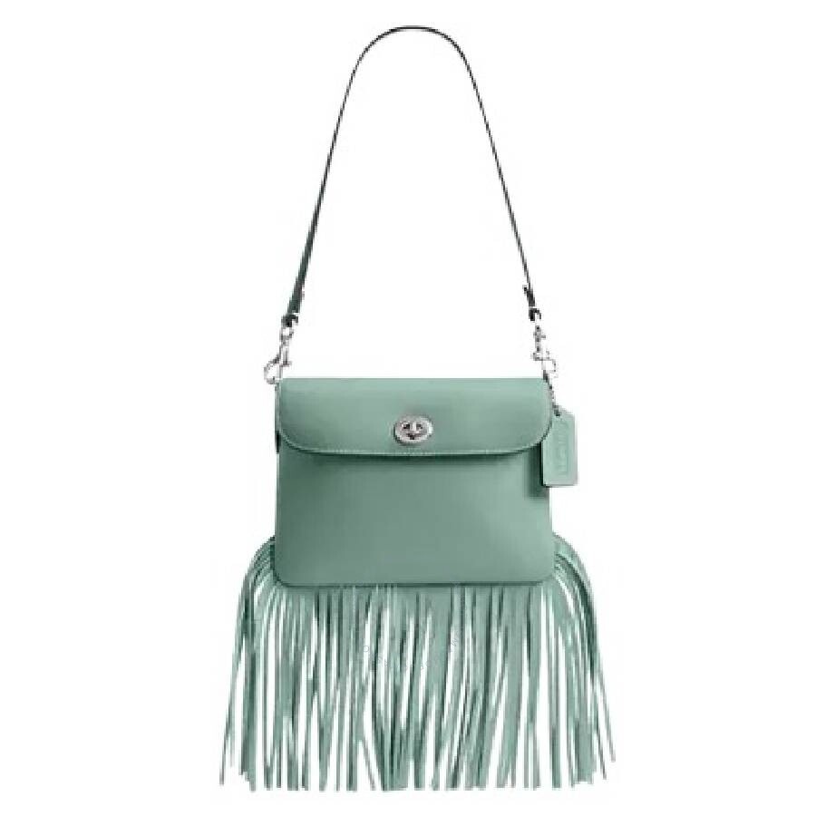 Coach Ladies Crossbody. SKU: CU033 LHAQM. Material: Leather. Closure Type: Twist & Lock. Color: Aquamarine. Size: 20.9cm x 15.8cm x 1.9cm. Coach Fringe 1964 Crossbody Bag. This crossbody bag features fringe trim, a turnlock closure, an outside open pocket, a detachable strap with a 21.5" drop and a detachable handle with a 9.75" drop. Material: Glovetanned leather. GENERAL Size Info: 20.9cm x 15.8cm x 1.9cm Brand Type: Designer Color: Aquamarine INFORMATION Brand: Coach Gender: Womens Model: CU033 LHAQM DETAILS Material: Leather Closure: Twist & Lock ADDITIONAL INFO UPC Code: 196395399703 Jomashop Sku: Z-34MZE Department: Bags Category: Crossbody