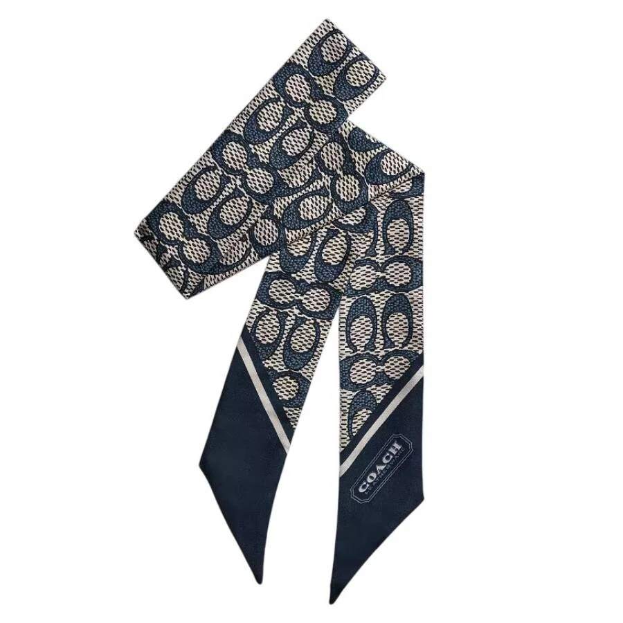 Coach Ladies Scarves. Fashion category: Scarves. SKU: C2783 DWP. Color: Midnight Navy. Size: L 50" x W 2.0". Coach Signature Print Silk Scarf. This scarf features Coach's textured Signature for a heritage style, finished with a stripe-and-solid border, and can be worn around your neck or tied to a favorite bag for a stylish touch. 100% Silk. GENERAL Brand Type: Designer Ring Style: Fashion Size Info: L 50" x W 2.0" Material: Silk Gender: Womens Color: Midnight Navy Apparel Type: Scarves INFORMATION Brand: Coach Model: C2783 DWP ADDITIONAL INFO UPC Code: 195031159435 Jomashop Sku: Z-EKHV2 Department: Fashion Accessories Category: Scarves