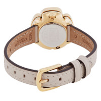 Gold-tone stainless steel case with a white leather strap. Fixed gold-tone stainless steel bezel. Silver dial with gold-tone hands. No markers. Dial Type: Analog. Quartz movement. Scratch resistant mineral crystal. Pull / push crown. Solid case back. Unique case shape, case size: 29 mm. Buckle clasp. Water resistant at 30 meters / 100 feet. Functions: hour, minute. Tea Rose Series. Casual watch style. Coach Tea Rose Quartz Silver Dial Ladies Watch 14504151. GENERAL Box Type: Original Box Brand Type: Designer CASE Case Diameter: 29 mm Case Material: Stainless Steel Case Shape: Unique Case Back: Solid BAND Band Material: Leather Band Type: Strap Band Color: White Clasp: Buckle DIAL Dial Color: Silver Type: Analog Crystal: Scratch Resistant Mineral Hands: Gold-tone Second Markers: No Markers Bezel: Fixed Bezel Color: Gold-tone Bezel Material: Stainless Steel Crown: Pull / Push INFORMATION Brand: Coach Series: Tea Rose Collection Name: Tea Rose Gender: Womens Model: 14504151 Movement: Quartz FEATURES Water Resistance: 30 meters / 100 feet Functions: Hour, Minute Watch Features: Analog, Gold, Leather, Stainless Steel ADDITIONAL INFO Watch Style: Casual Warranty: 2 Year Jomashop Warranty Jomashop Sku: CC14504151 Department: Watches