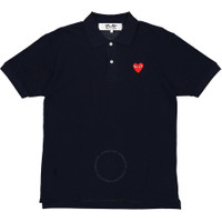 Comme Des Garcons Men's Tops. Fashion category: Shirts & Blouses. SKU: P1T006-2. Color: Navy. Comme Des Garcons Embroidered Red Heart Polo Shirt In Navy. Comme Des Garcons polo shirt is crafted from cotton with an embroidered red heart emblem on the chest. This polo shirt features short sleeves, ribbed armbands, front placket with 2 buttons, a classic polo collar, and a straight hem. Material: 100% Cotton. GENERAL Color: Navy INFORMATION Brand: Comme Des Garcons Gender: Mens Model: P1T006-2 DETAILS Category: Tops Apparel Type: Polo Shirts Material: Cotton ADDITIONAL INFO Jomashop Sku: -P1T0062 Department: Apparel